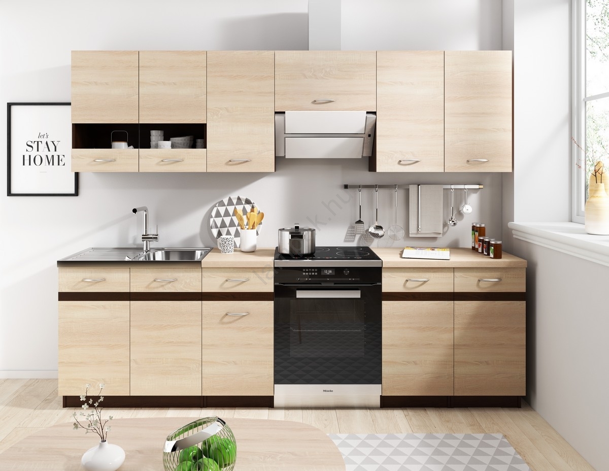 Konyhabútor VALERIA 240 cm barna/sonoma tölgy