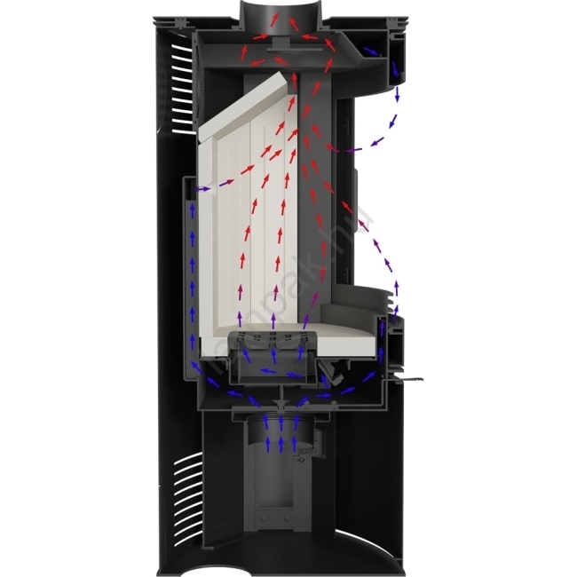• A tűztér Termotec kerámiával van bélelve (vastagság: 3,5 cm), amely növeli a tűztér hőmérsékletét és javítja az égést.