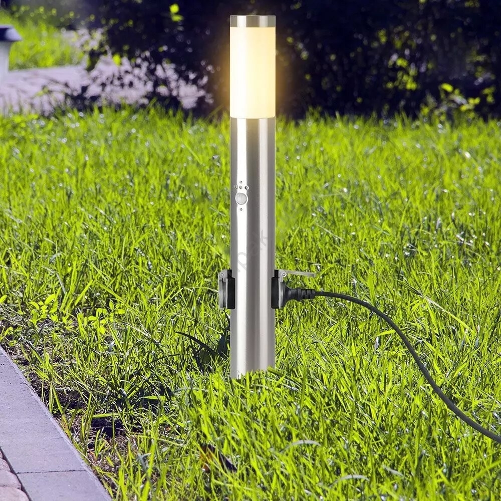 • Kültéri érzékelős lámpa + 2 aljzat SCHUKO 1xE27/60W/230V IP44 60cm matt króm