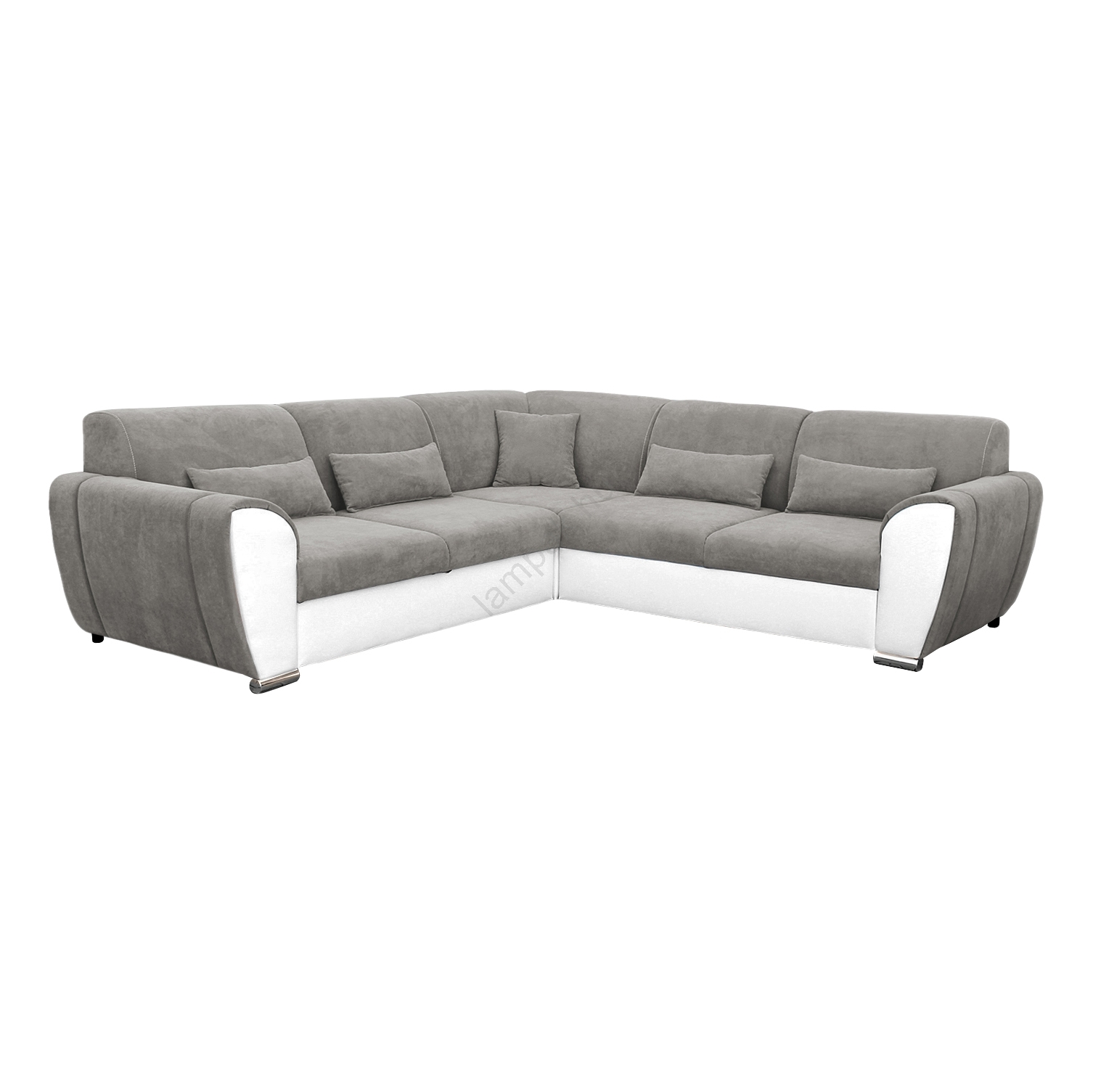 • VISEU jobb oldali, L-alakú, ágyneműtartós, ággyá nyitható sarokkanapé, szürke/fehér