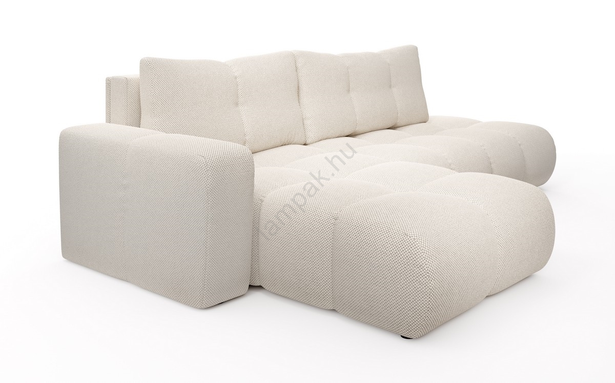 • ALMADA L alakú, jobb oldali, kihúzható kárpitozott sarokülőgarnitúra tárolóval, bézs