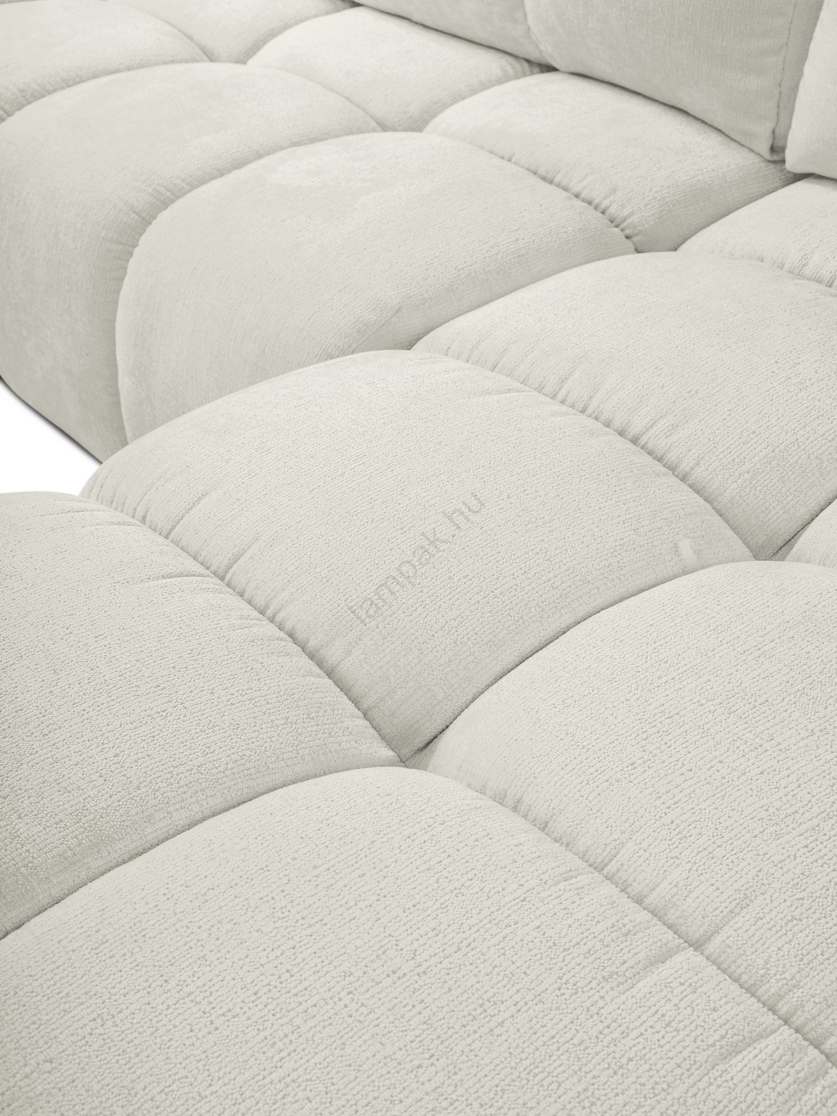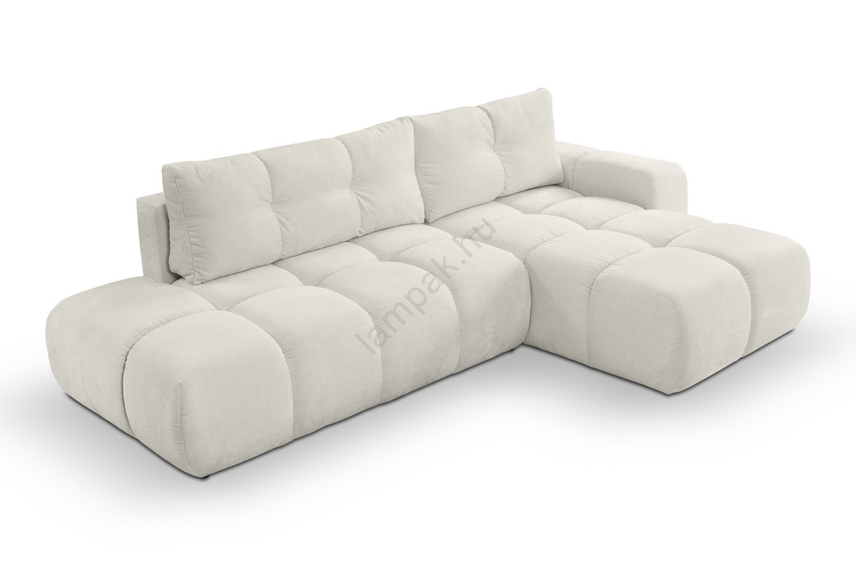 • ALMADA L-alakú, balos, ággyá nyitható kárpitozott ülőgarnitúra tárolórekesszel, világos bézs