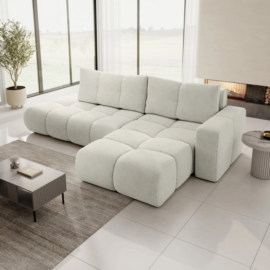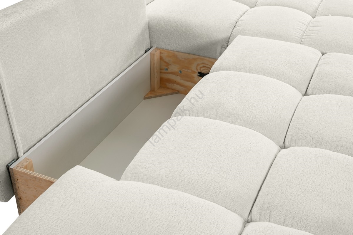 • ALMADA L alakú, jobb oldali, kihúzható kárpitozott sarokülőgarnitúra tárolóval, bézs