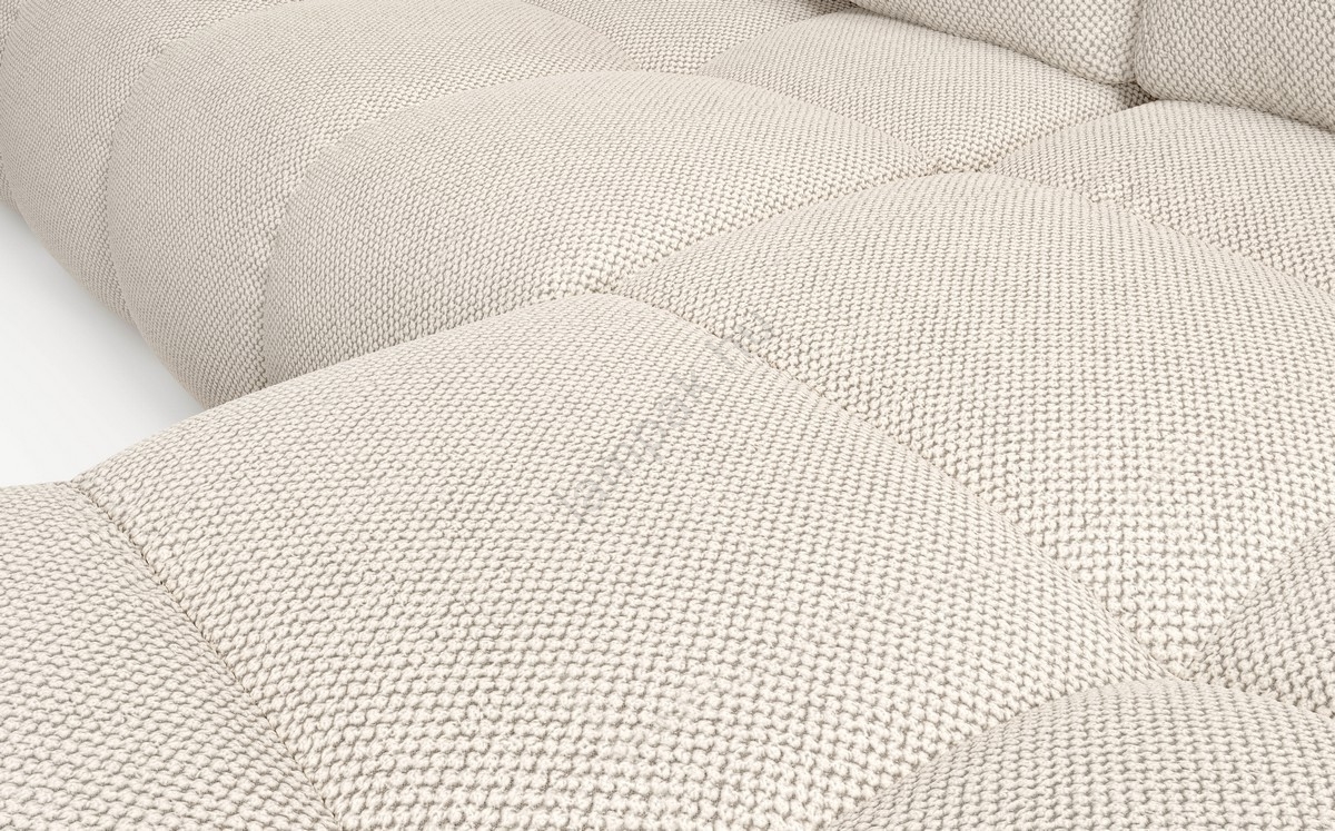 • ALMADA L-alakú, balos, ággyá nyitható kárpitozott ülőgarnitúra tárolórekesszel, világos bézs