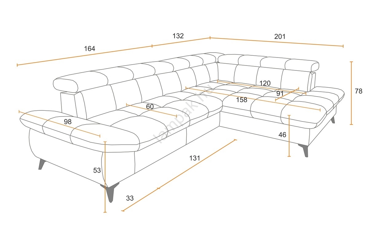 • Modern sarokkanapé (jobb sarok) ideális választás mindazok számára, akik a stílus, kényelem és praktikusság tökéletes kombinációját keresik.