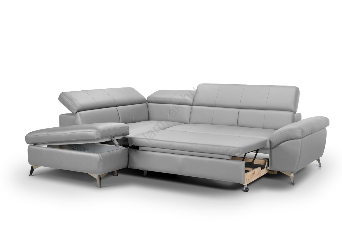 • Bőrkárpitozású, balos, L-alakú, kihúzható sarokkanapé SALERNO II szürke