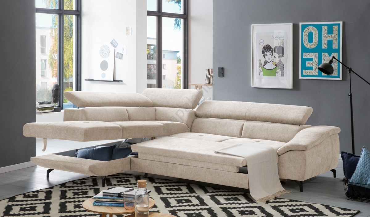 • Kihajtható sarokkanapé tárolóhellyel, jobbos L-alakú BRESCIA bézs