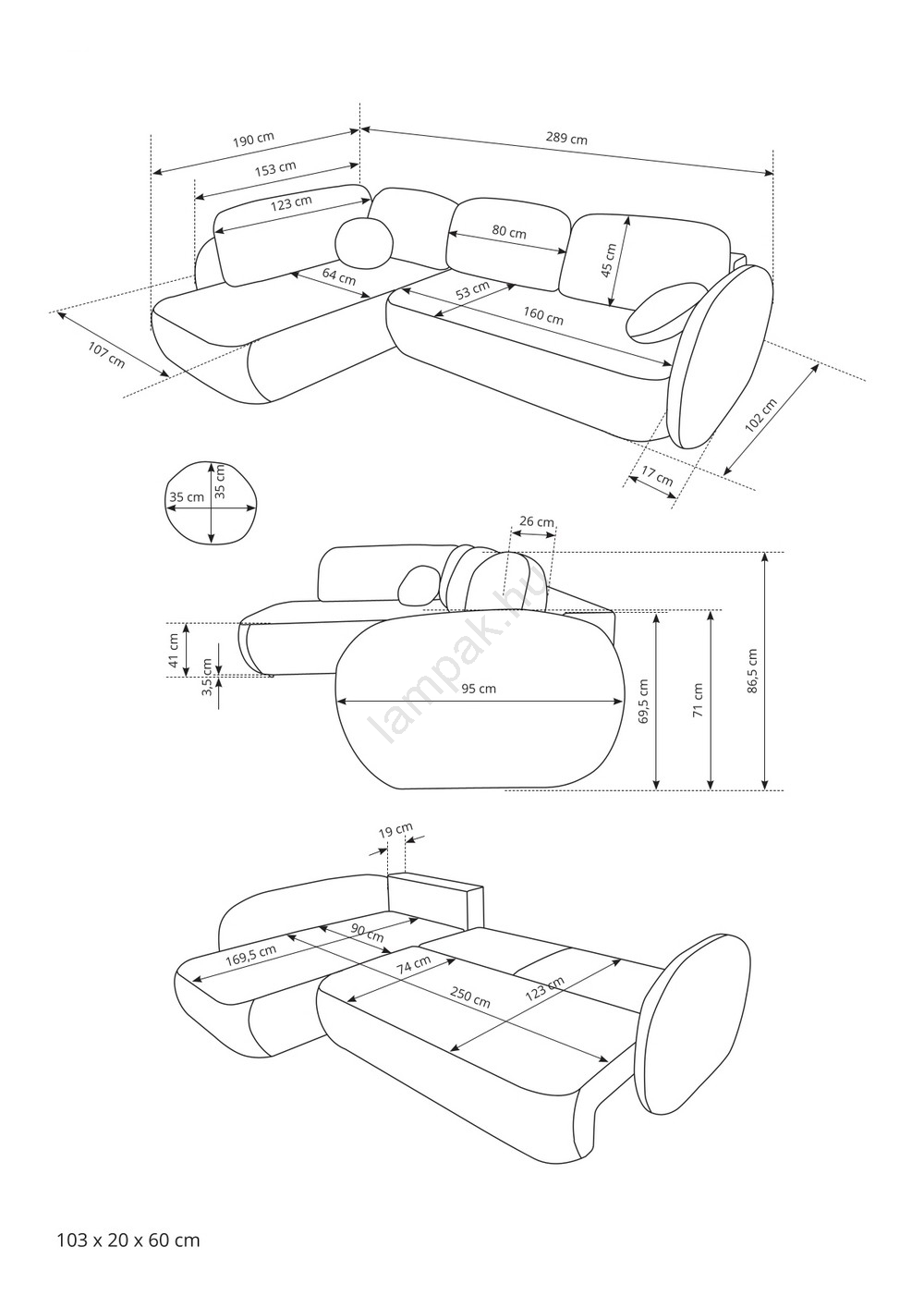 • 3. doboz: 63 x 172 x 40 cm (36,5 kg).