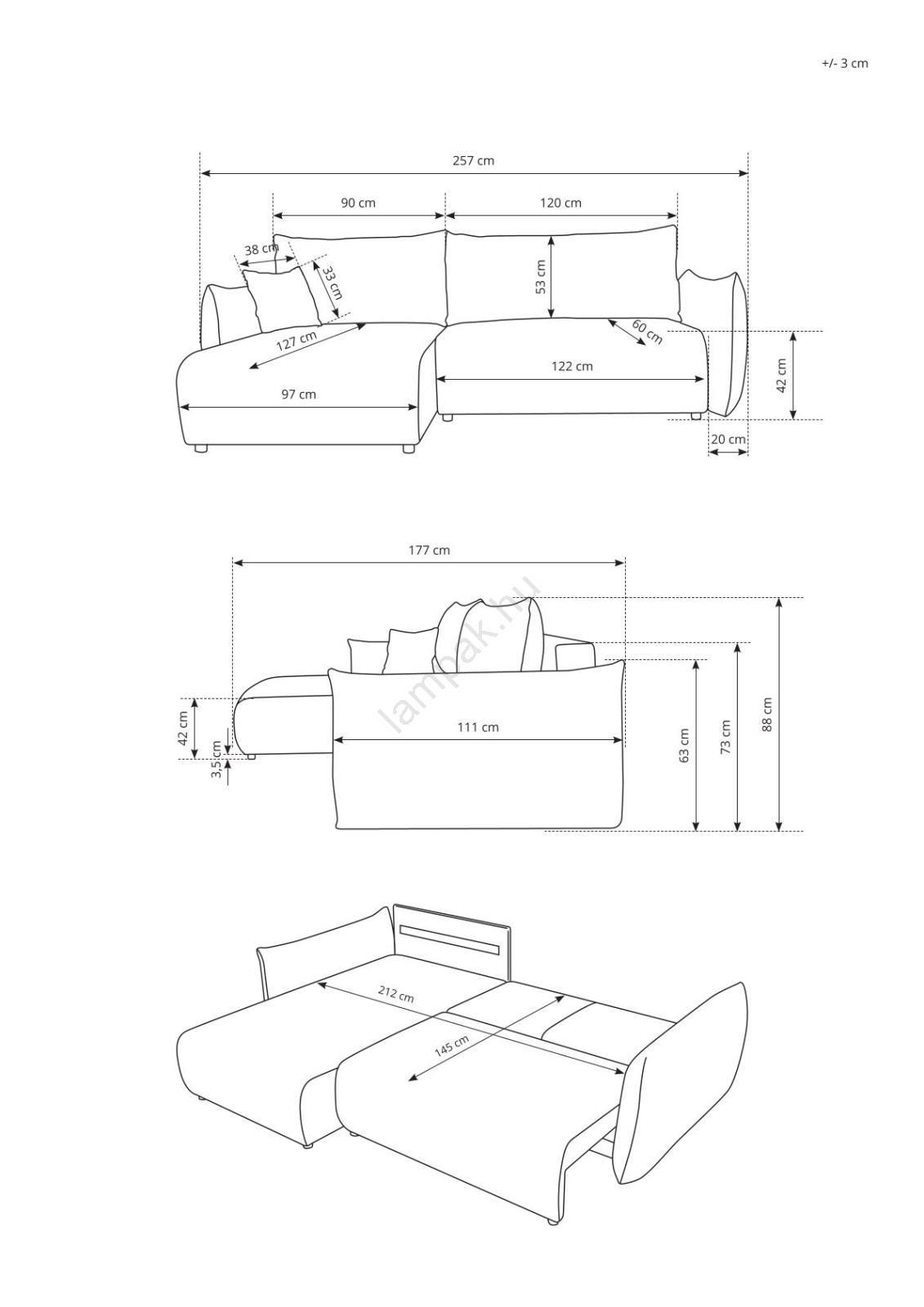 • Elegant lábak (magasság 3,5 cm) modern megjelenést kölcsönöznek a kanapénak, ugyanakkor biztosítják a stabilitást és a hosszú élettartamot.