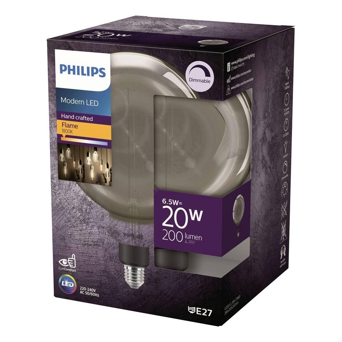 LED dimmelhető filament izzó G200 E27/6,5W/230V 1800K