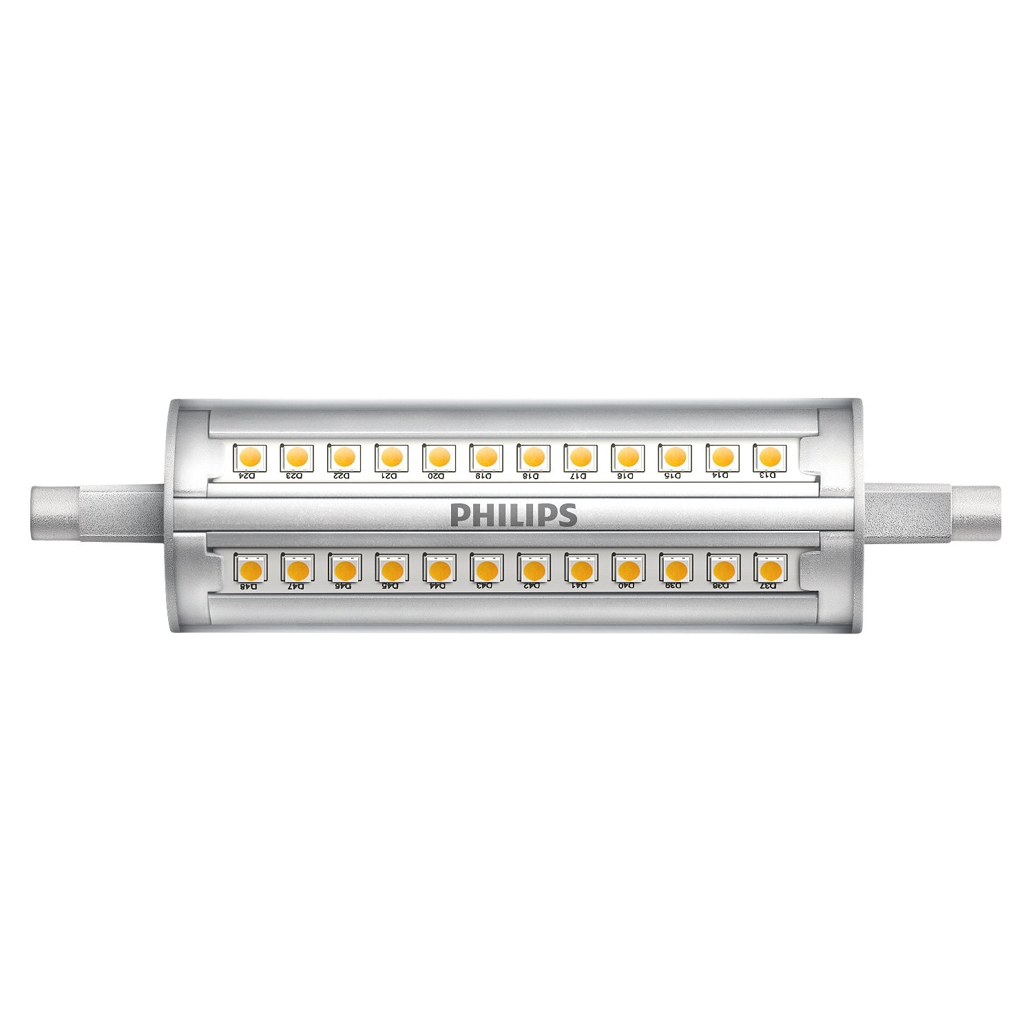A LED Dimmelhető izzó Philips R7s/14W/230V 4000K A kiváló minőségű dizájn biztosítja a belső tér tökéletes megvilágítását. A R7s kategória az azonos aljzattal rendelkező izzókra vonatkozik. E-shopunkban választhat hagyományos izzószálas vagy modern LED izzók közül, melyek energiatakarékosabbak és hosszabb élettartamúak.