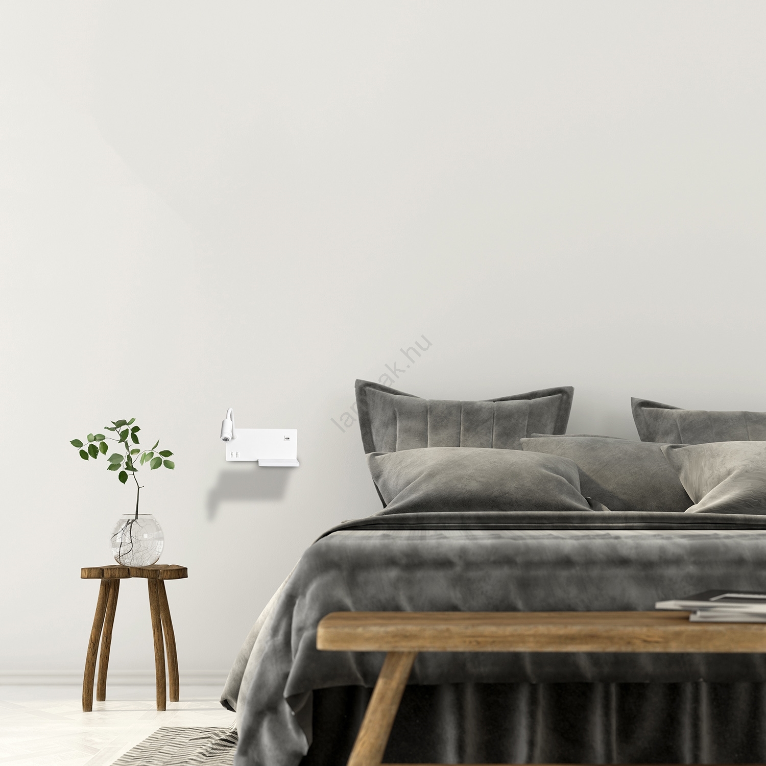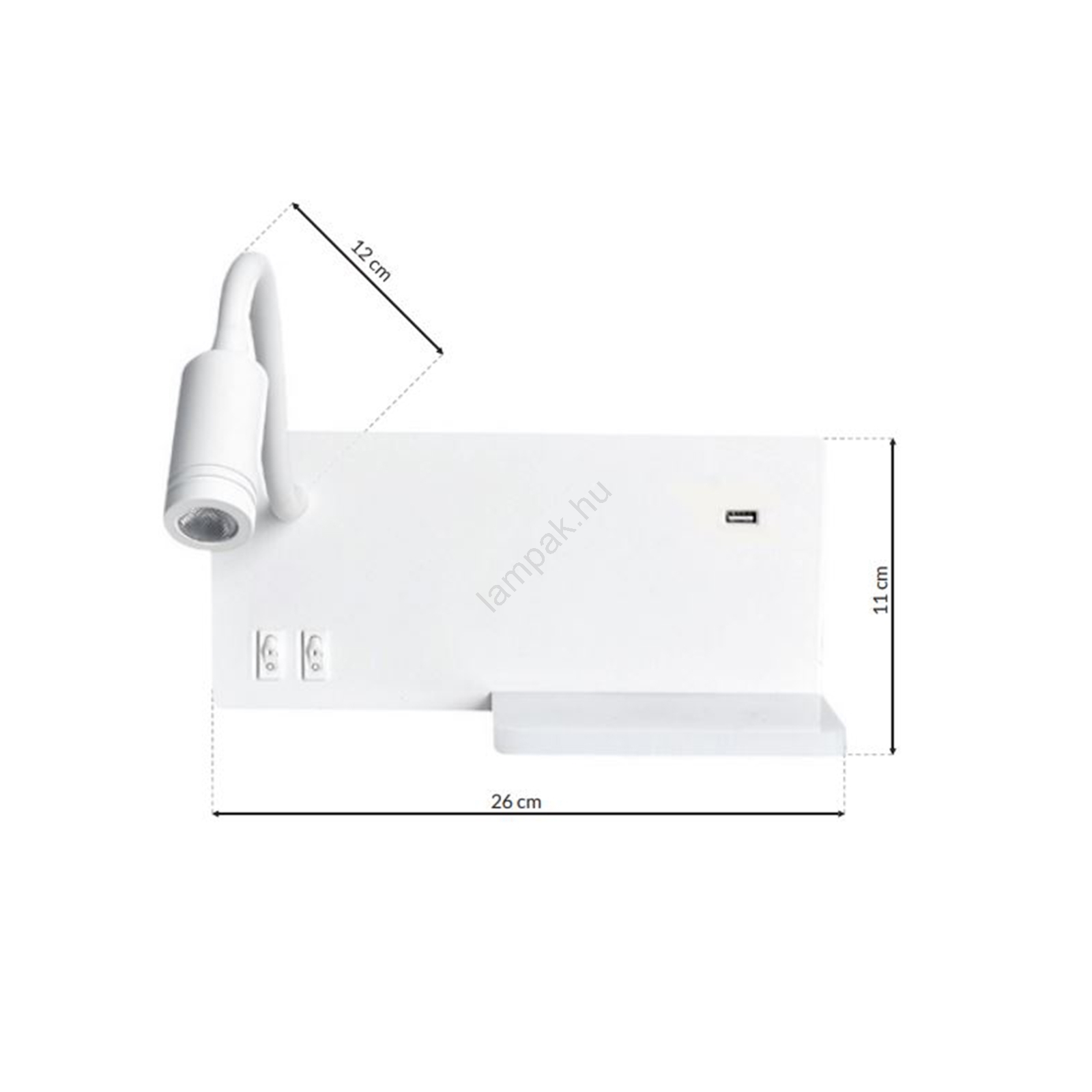 •  A falilámpa elhelyezésére szolgáló tábla praktikus USB aljzattal és polccal van felszerelve, valamint két kapcsolóval, amelyek okostelefonok és egyéb elektronikai eszközök töltésére használhatók.