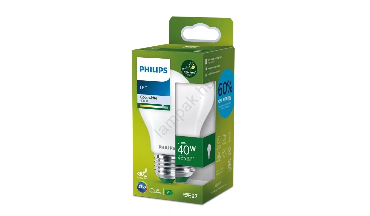 • Philips ULTRAEFFICIENT A60 LED izzó E27, 2,3 W, 230 V, 2700 K
