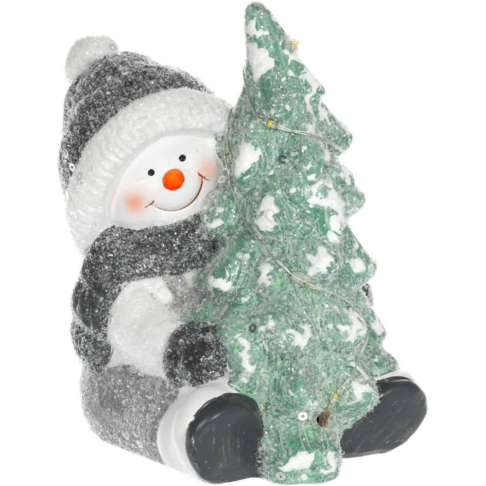 LED karácsonyi dekoráció LED/2xLR44/meleg fehér hóember fával