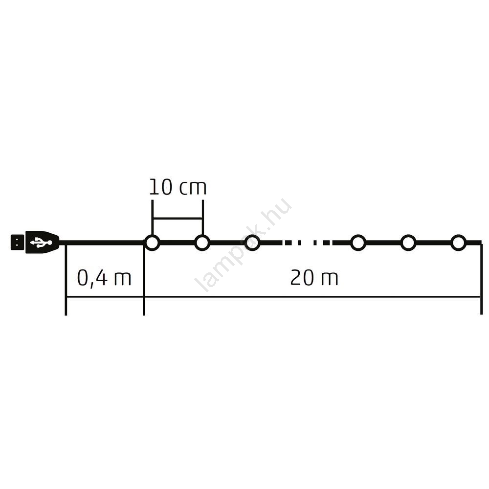 • A világító rész hossza 20 méter, összesen 200 LED diódával.