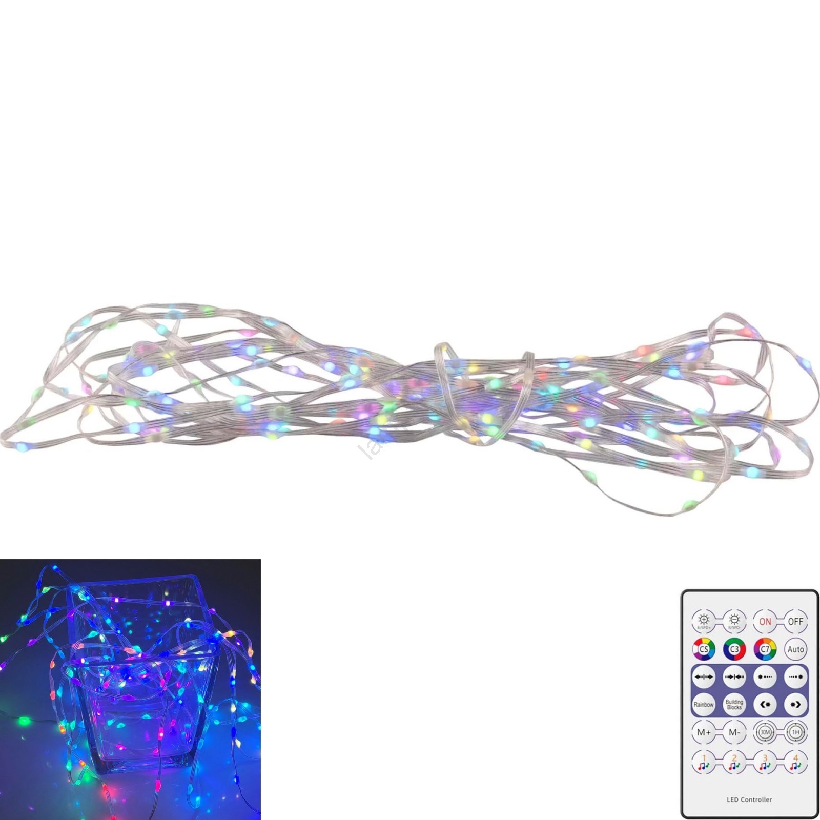 RGB LED füzér 10 m, 10 W/5 V, USB + távirányítóval