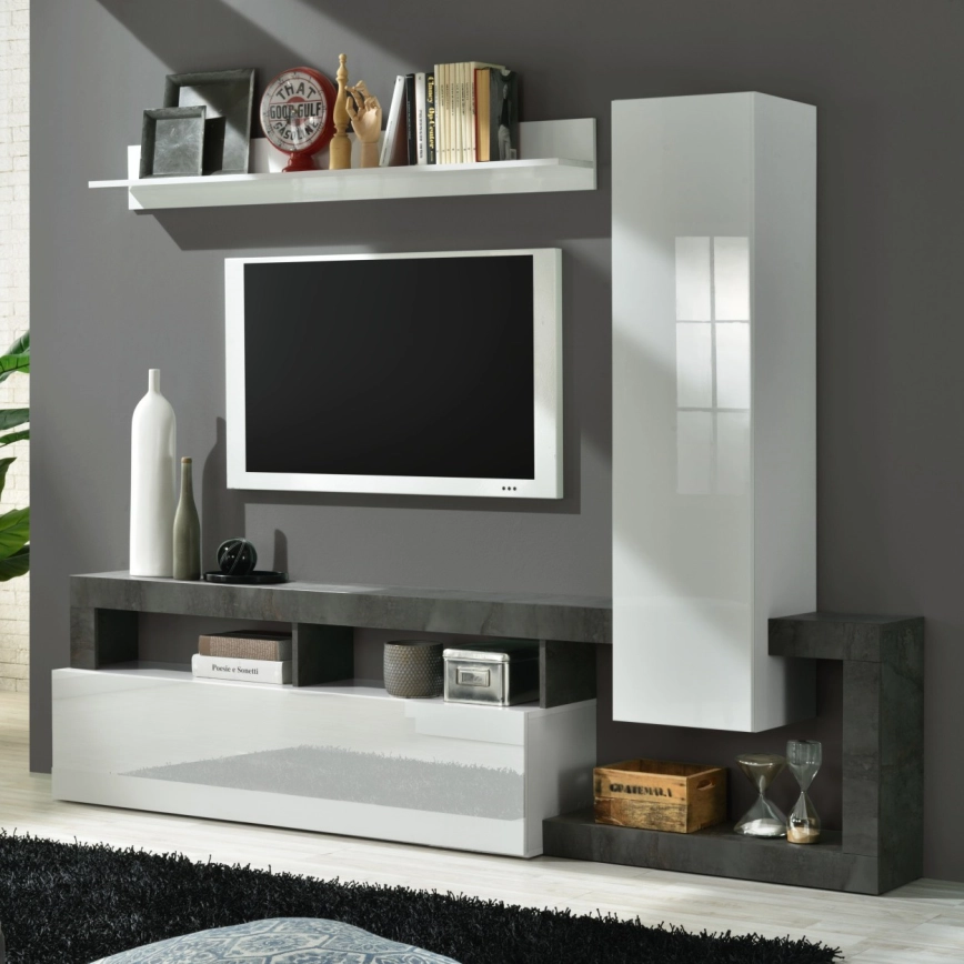• Nappali szekrénysor LENOR fehér/szürke beton