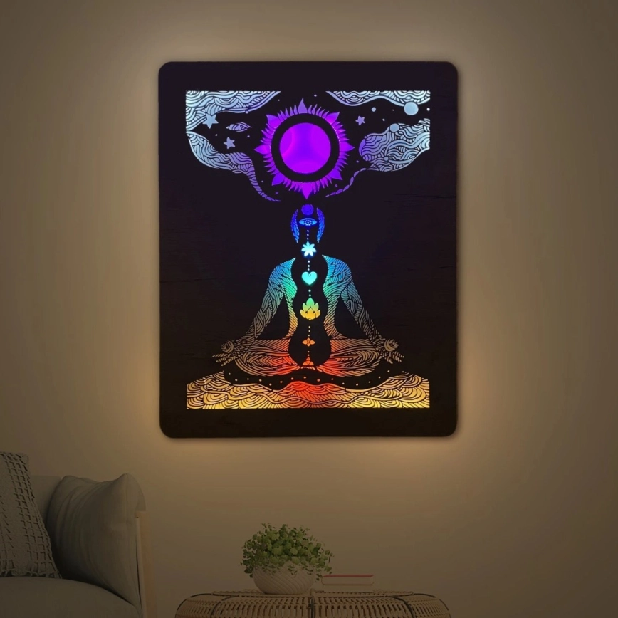 Li-Go 4421/A/4 - LED dimmelhető falra szerelhető dekoráció LED/10W/5V 30000 mAh 70x90 cm tölgy/csakrák
