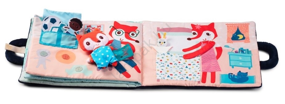 • Gyönyörű textilkönyv, tele színes képekkel és interaktív tevékenységekkel.