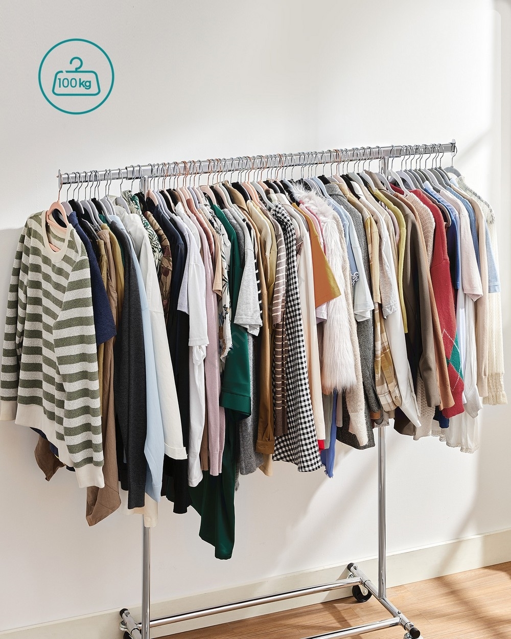 • A felső rúd egyenletes terhelés esetén akár 90 kg-ot is elbír, anélkül, hogy billegne vagy felborulna; a kihúzható rúd további helyet biztosít ruháinak, kalapjainak, táskáinak stb.
