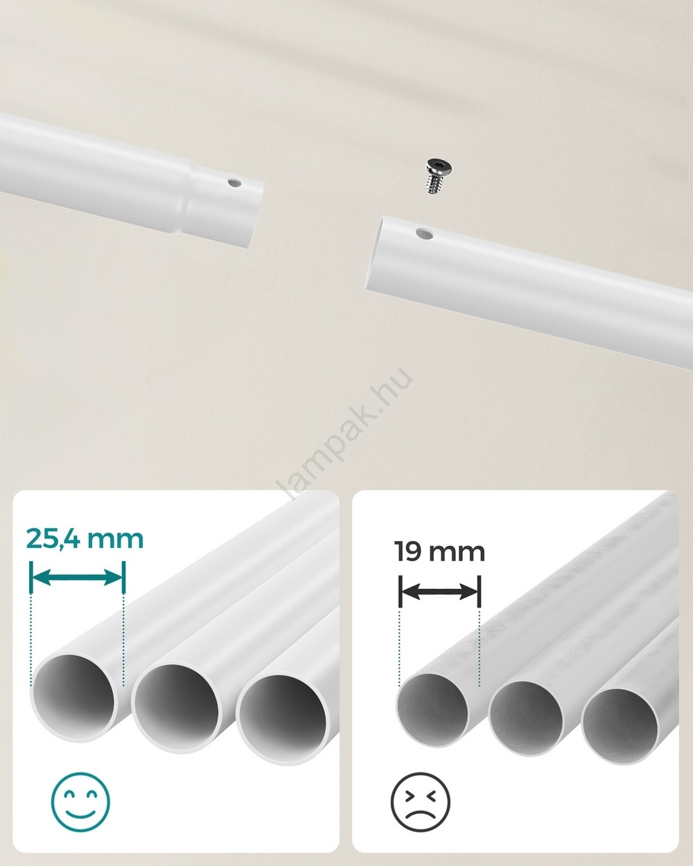 • Az olyan csavarokkal, amelyek rögzítik a 25,4 mm átmérőjű acélcsöveket, ennek a fogasnak stabil vázszerkezete van, akár 100 kg teherbírással.