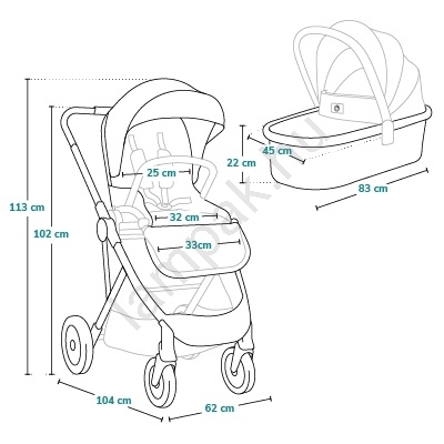 • 2 az 1-ben kombinált babakocsi: tágas mózeskosár és sportülés születéstől kb. 4 éves korig.