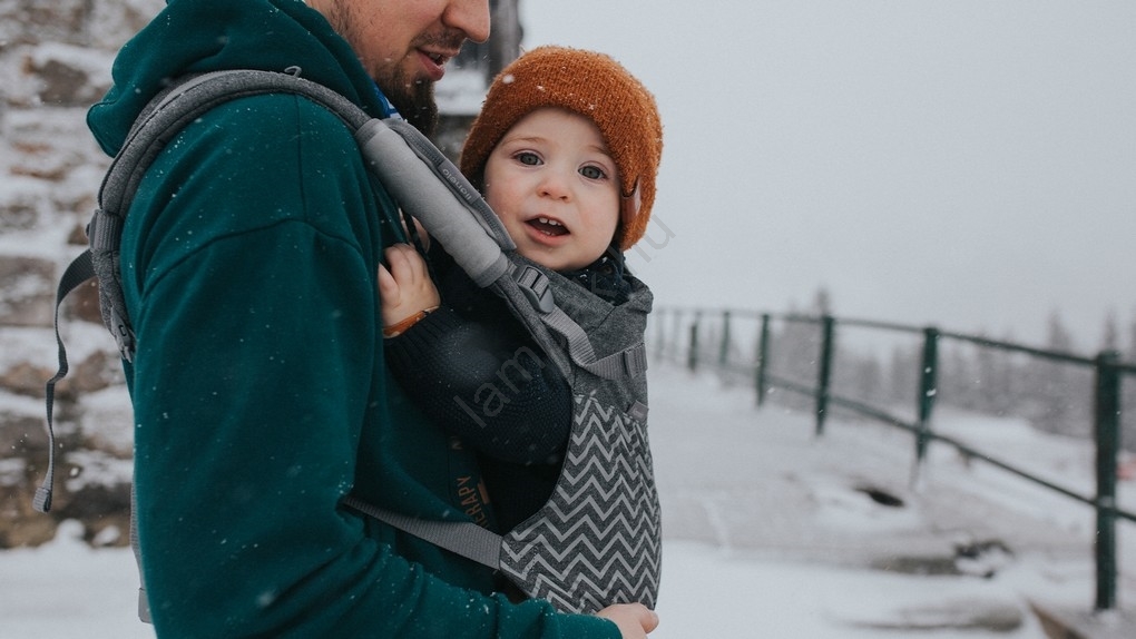 • A széles textilpanel a baba gerincét természetes, ergonomikus helyzetben támasztja.
