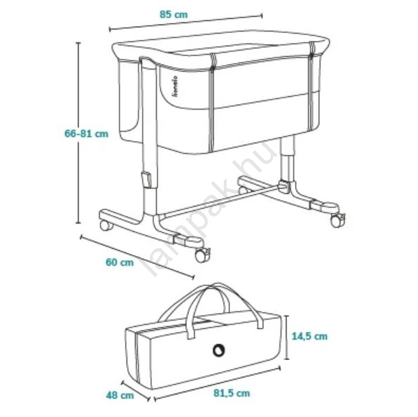• Összecsukva kompakt méretek és a hozzá járó, fogantyúval ellátott szállítótáska révén a kiságyat mindig magával viheti.