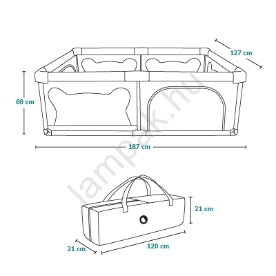 • A játszótér mérete lehetővé teszi a szabad mozgást, gurulást, kúszást és az első lépéseket anélkül, hogy elhagyná a területet.