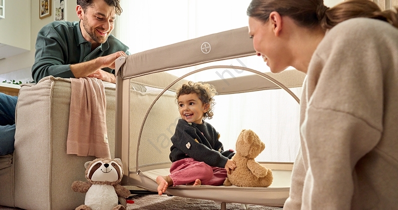 • Összecsukható utazóágy, amely játszórácsként is használható.