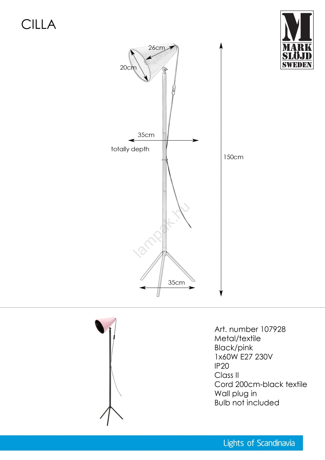 • Markslöjd 107928 - Állólámpa CILLA 1xE27/60W/230V