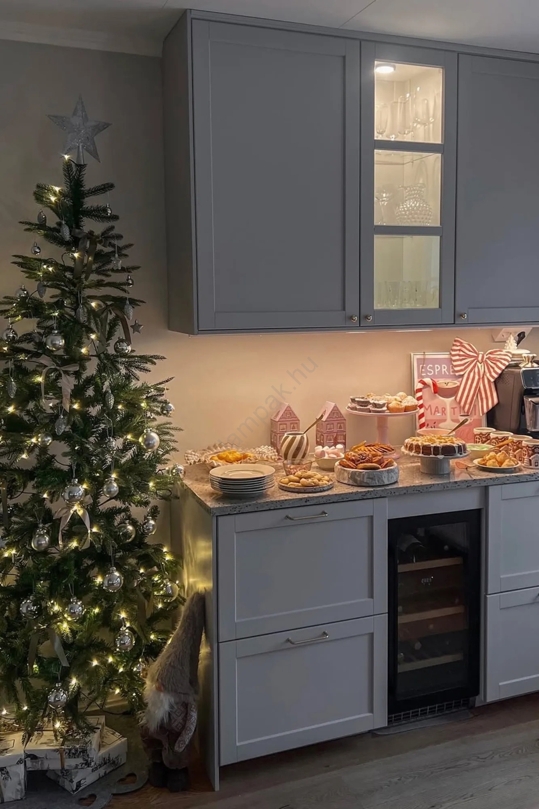 • Karácsonyfa fényfüzérrel.