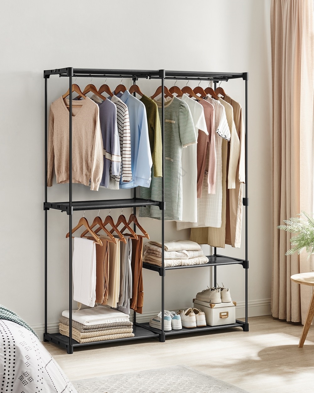 • 3 ruhafogas rúddal (egyenként akár 20 kg teherbírással) ráakaszthat ruhákat, öveket és nyakkendőket.
