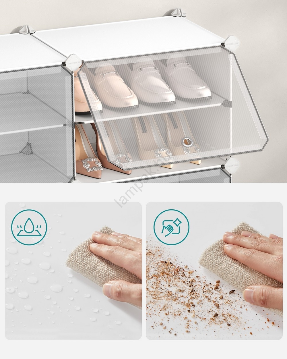 • Átalakíthatja önálló egységekké, vagy akár 2 kisebb polcra is bonthatja, hogy cipőket, ruhákat vagy piperecikkeket tároljon a fürdőszobában vagy bármely más kívánt helyiségben.