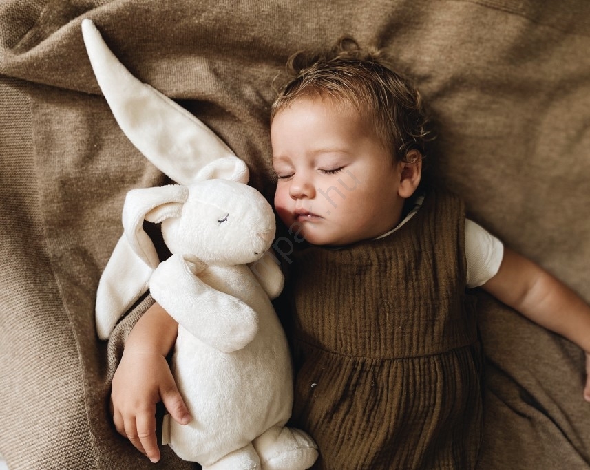 • A nyuszi a Moonie Organic kollekció része, tanúsított organikus pamutból készült, nem toxikus festékekkel színezve.