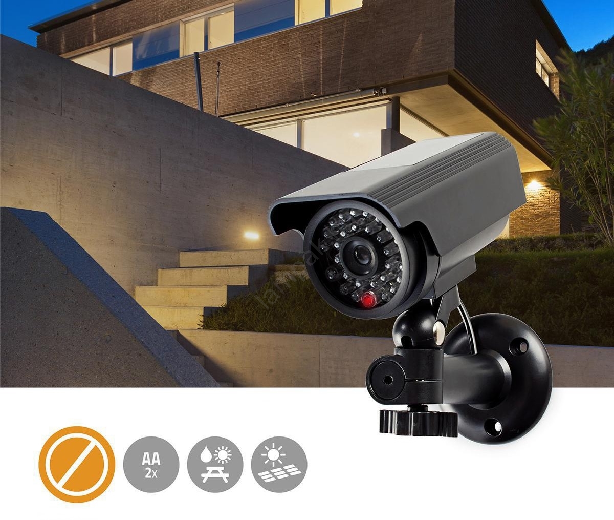 LED biztonsági kamera makett napelemes panellel 2xAA IP44