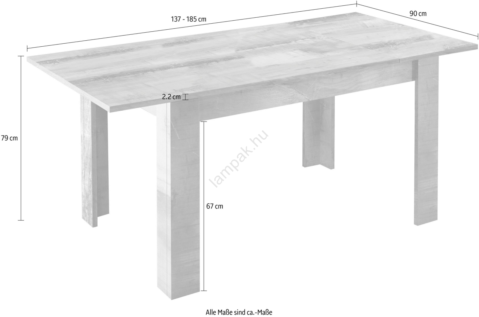 • Kinyitott asztal méretei: 185 x 90 cm.