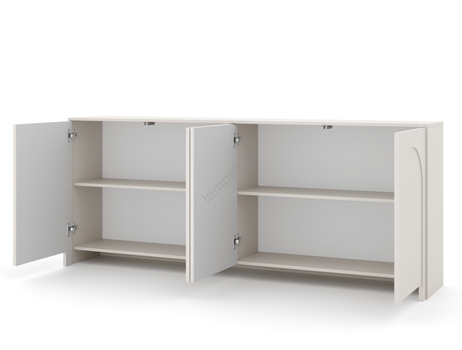 • Négy ajtóval rendelkezik, amelyek mindegyikét finom, ívelt mintázat díszíti, elegáns vizuális hatást keltve.
