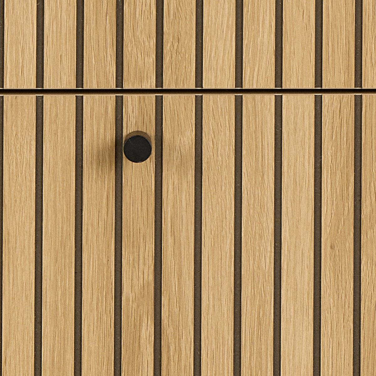 • Ez a tölgyhatású komód lamellás előlapjával stílust és praktikusságot kölcsönöz előszobájának.