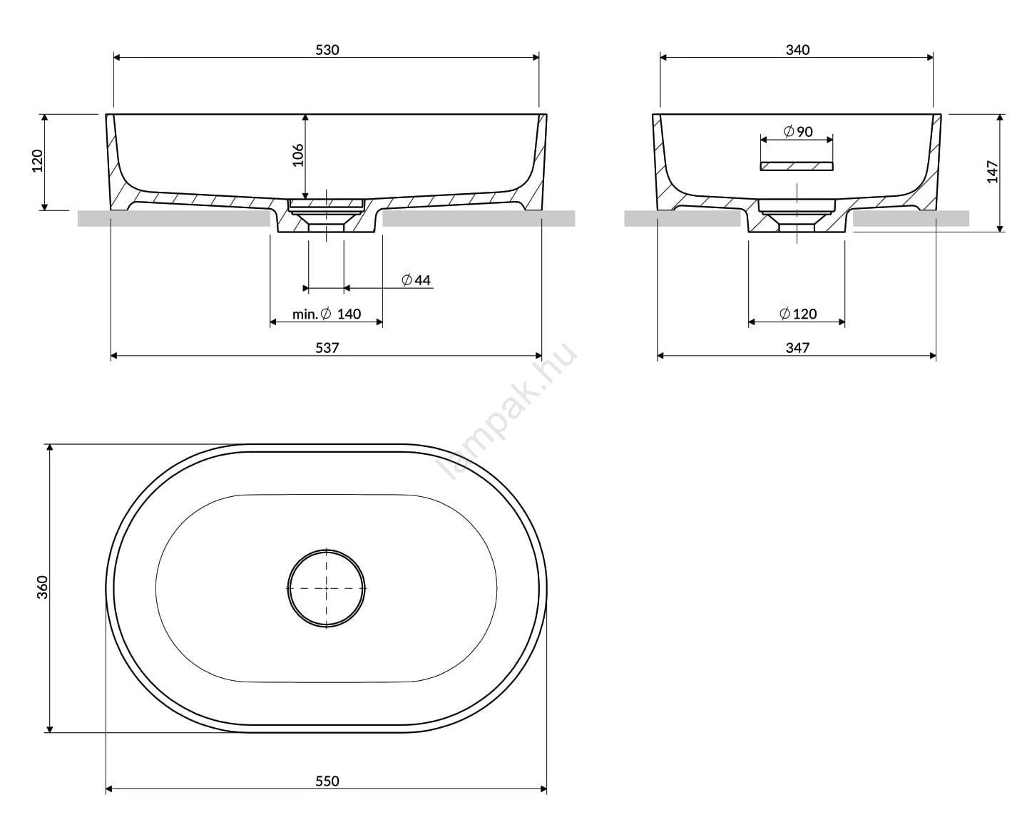 • OMNIRES OVOUNBP - OVO 55x36 cm-es mosdó asztalra, dolomit/fényes fehér