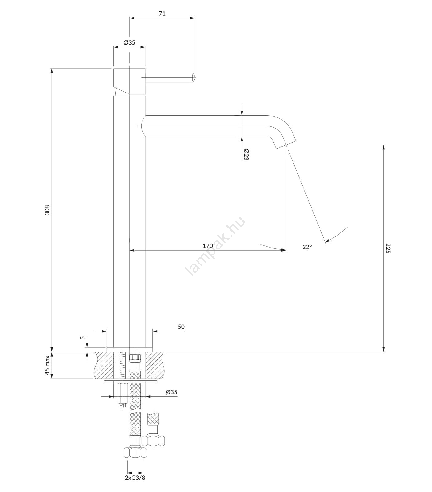 • Egykaros csaptelep a vízhőmérséklet és áramlás egyszerű szabályozásához.