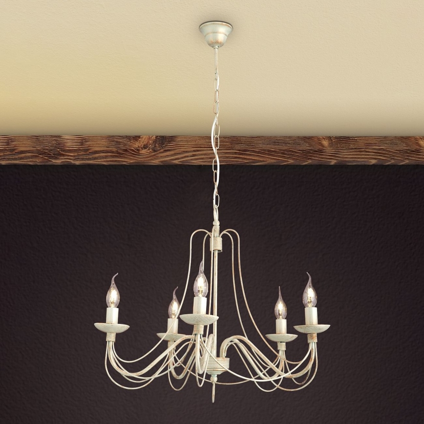 Csillár láncon VELA 5xE14/40W/230V átm. 60 cm fehér/arany/patinás