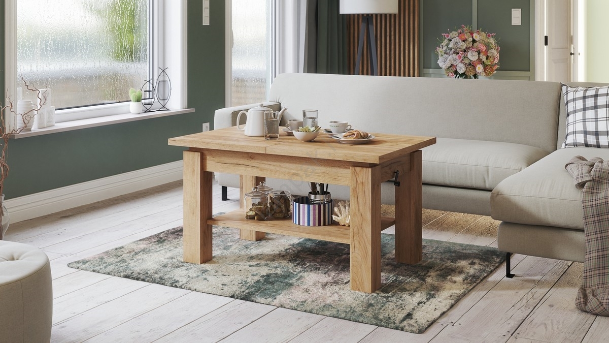 • Bővíthető dohányzóasztal polccal ADONIS 110/150x68 cm craft tölgy