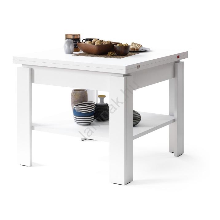 Kihajtható konferencia/étkezőasztal LIA fehér tárolópolccal