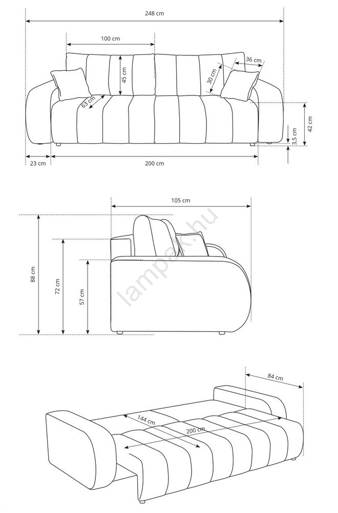 • Modern, kihúzható háromszemélyes DESIO kanapé ideális választás mindazok számára, akik a stílus, kényelem és praktikusság kombinációját keresik.