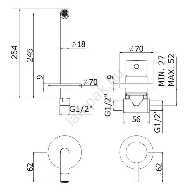 Paffoni - LIGHT falon belüli mosdócsaptelep, rozsdamentes acél