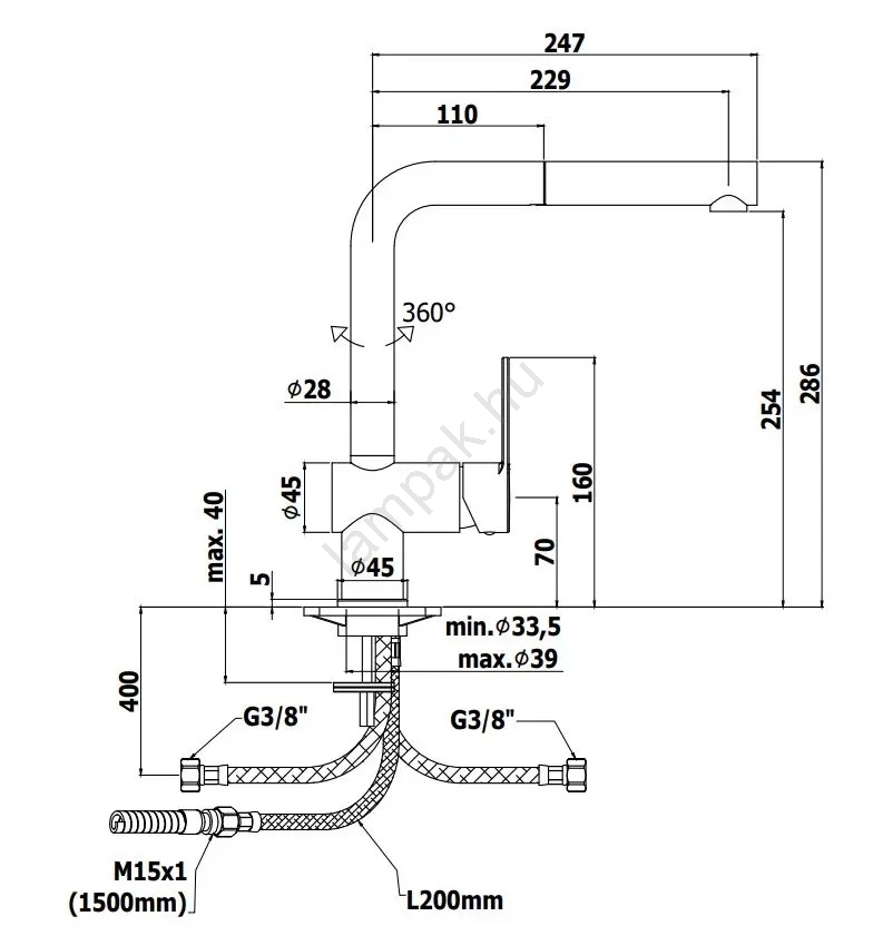 • A forgatható kifolyó kényelmes használatot biztosít egy- és kétmedencés mosogatóknál.