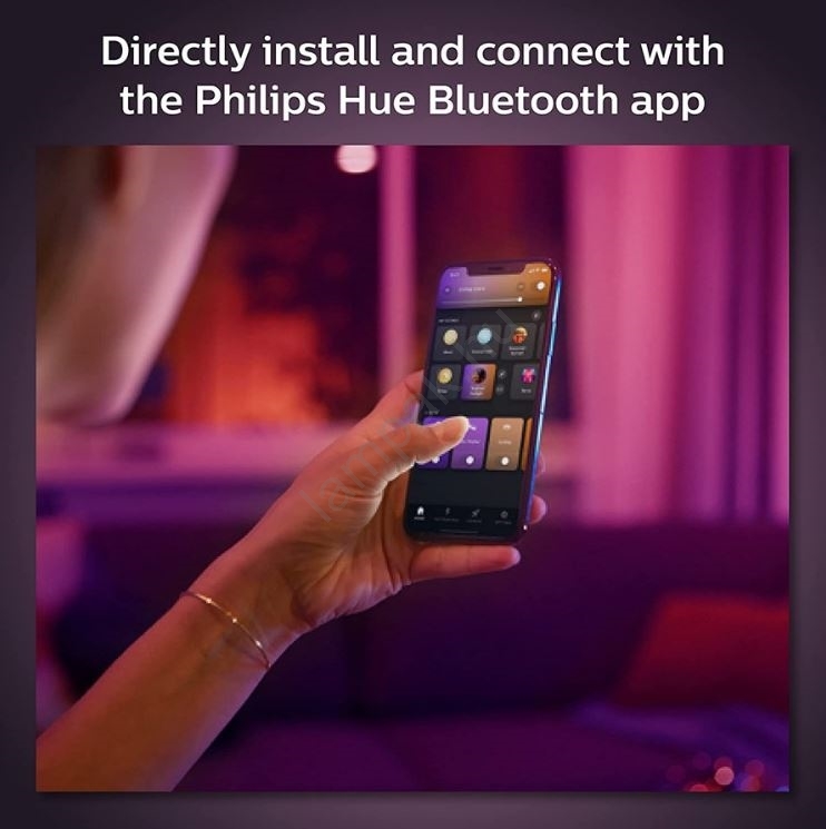 • A fényt önállóan vezérelheti a Bluetooth alkalmazáson keresztül, vagy csatlakoztathatja egy intelligens világítási rendszerhez a Hue Bridge segítségével, és élvezheti a funkciók teljes skáláját.