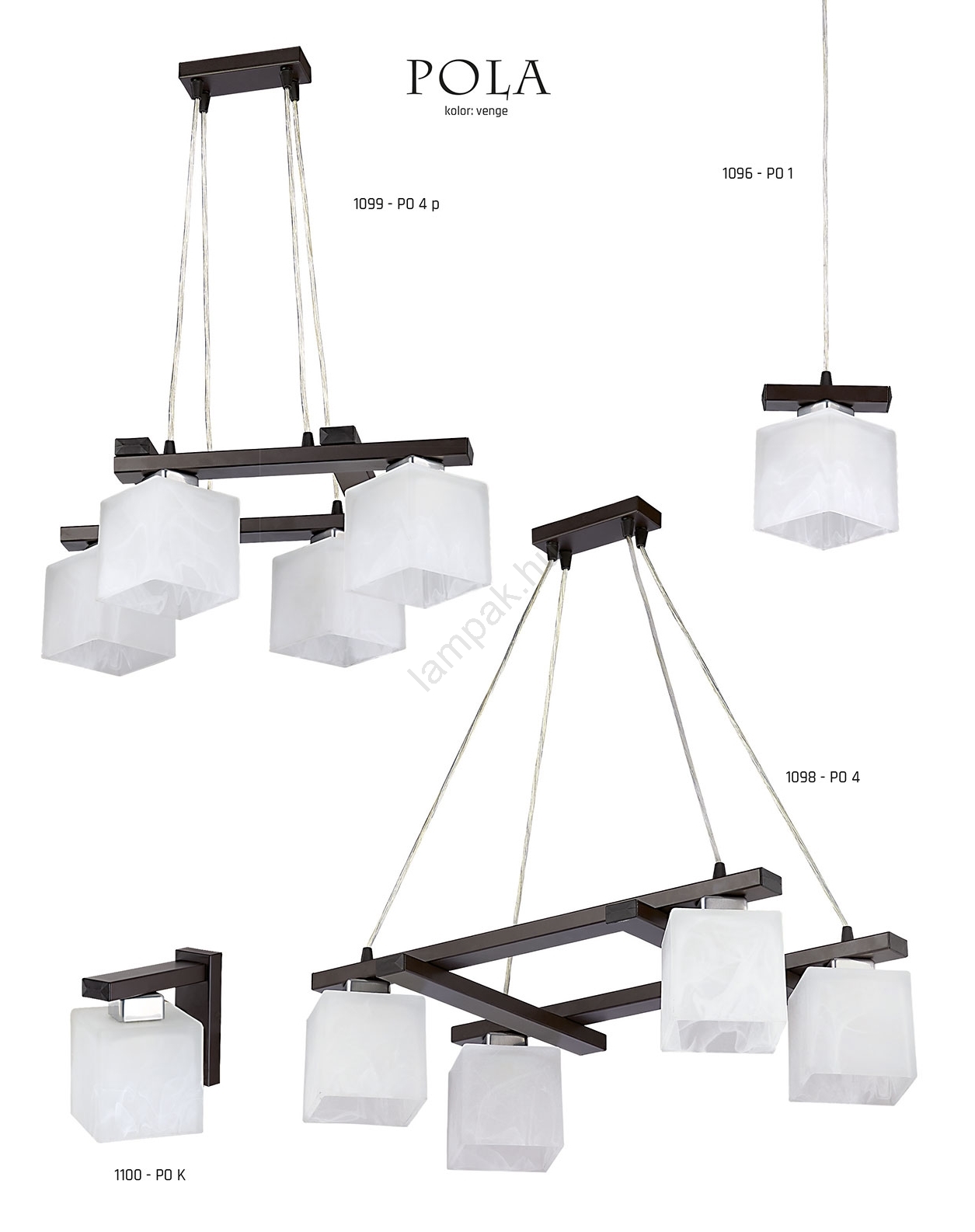 A Jupiter 1099 - PO 4 p - Csillár POLA 4xE27/60W/230V wenge a szép és funkcionális dizájn jellemzi.  A világításhoz egy E27 aljzattal ellátott izzó alkalmas. Itt további izzókat vásárolhat kedvező áron. Érdekes kiegészítője lesz otthonának.
