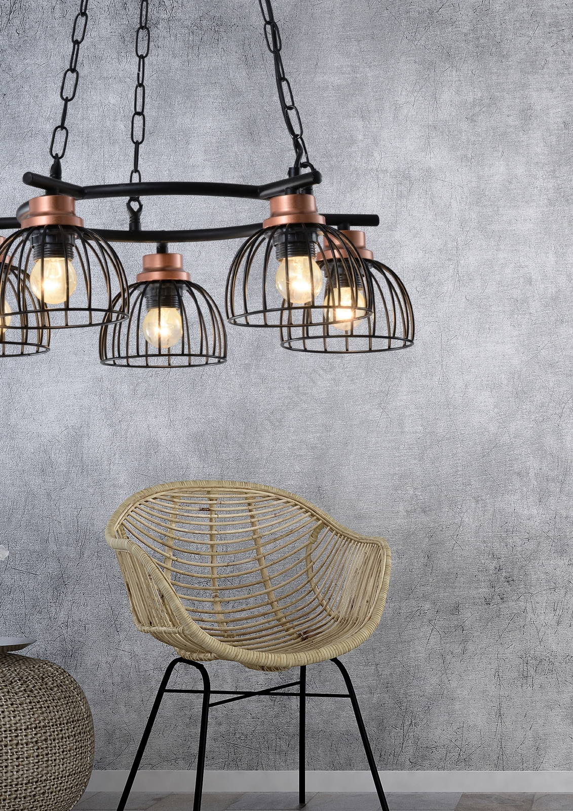 A Prezent 75466 - Csillár láncon BASKET 5xE27/60W/230V a szép és funkcionális dizájn jellemzi.  A világításhoz egy E27 aljzattal ellátott izzó alkalmas. Itt további izzókat vásárolhat kedvező áron. Érdekes kiegészítője lesz otthonának.
